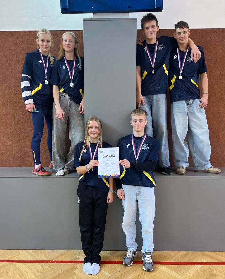 Ve čtvrtek 13. 11. 2025 se naši žáci a žákyně zúčastnili sportovní soutěže ve šplhu na tyči na ZŠ Mazurská. Akce proběhla pod záštitou AŠSK Prahy 8. Soutěžní kategorii tvořila smíšená družstva (2 kluci a 2 dívky) zvlášť pro 6. a 7. třídu a 8. a 9. třídu. Mladší kategorie (6. a 7. třída) dosáhla na krásné 3. místo v konkurenci 7 dalších škol. Ve starší kategorii (8. a 9. třída) se našim žákům podařilo zvítězit v konkurenci všech 8 škol a postoupit tak do dalšího krajského kola, což je veliký úspěch!